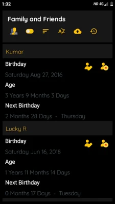 ✓ Sort family and friends data by age, name, event name, date of birth, weekday, month, and upcoming birthdays