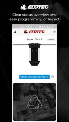 Together with the WiFi or BLE-diagnostics module for Aspect, this app offers simple status readouts and programming of the Elotec Aspect.