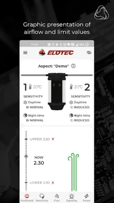 Main features: - Graphic presentation of air flow and threshold values. - Text event log with suggested actions. - Easy-to-understand changing of functional parameters.