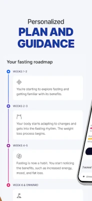 - Constant motivation and support through a built-in nutrition tracker and a fasting timer that build long-lasting habits.