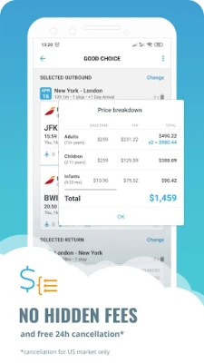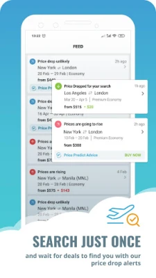 Search cheap international flights and see price changes in app. Buy when the price is right.