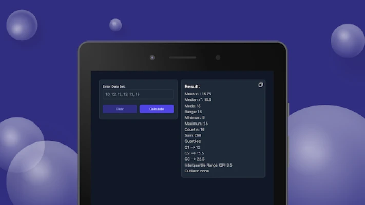 6. **Offline Functionality:** Analyze data sets even without internet connectivity, ensuring you're always ready to calculate.