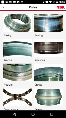 The app also includes many images and sound clips to help users diagnose types of bearing damage and possible causes. Detailed explanations help users learn the key characteristics of different types of bearing damage.