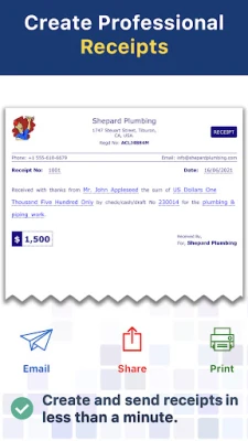 With the Receipt Maker app, you can create customized receipts and print, email, SMS, or share them. You can sign these receipts and send them to your customers with a single tap. Make the receipt with minimal information like customer name, service, amount, payment method, and receiver name.